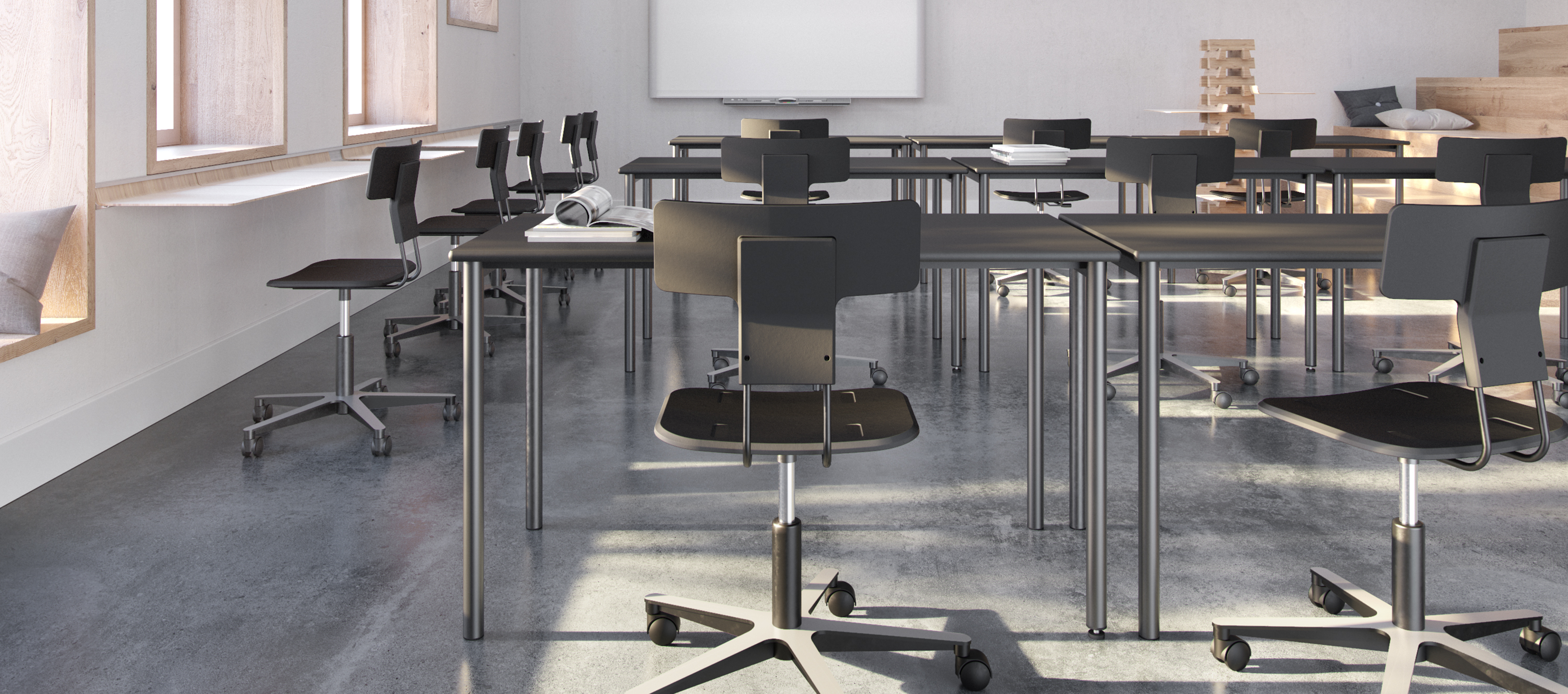 Freedom of movement is the essence of Topic Chair, a flexible classroom chair, designed in collaboration with Højer Møbler.
